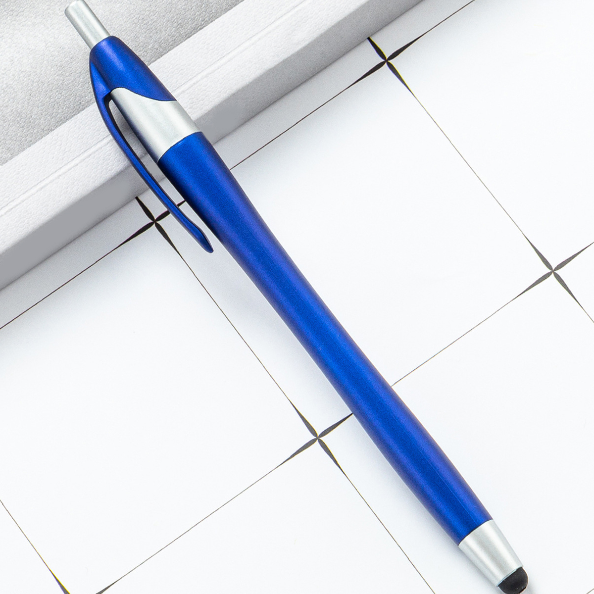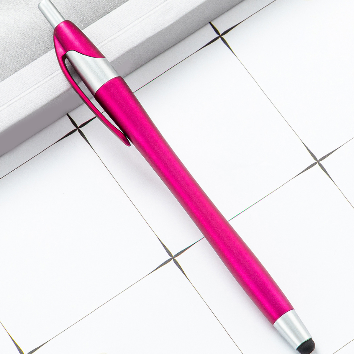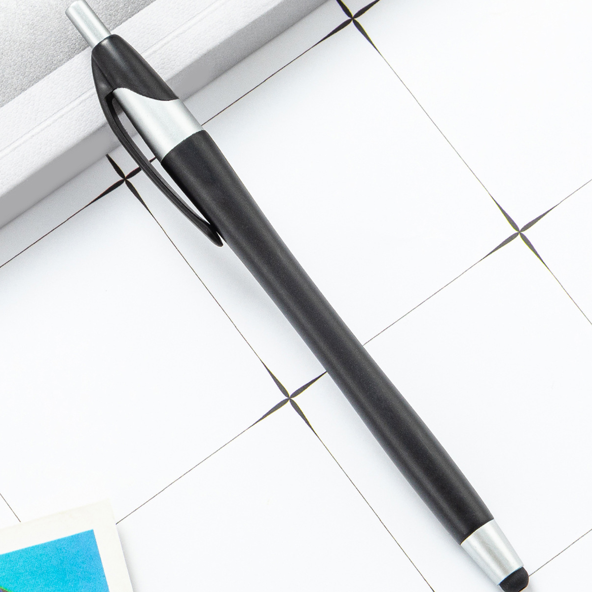 This 2-in-1 slim stylus pen is an ideal promotional item for electronic stores, phone companies, and communication businesses. Its built-in clip allows for convenient transport, easily attaching to pockets, books, or diaries. The soft rubber tip is compatible with all capacitive touch screen devices, including phones and tablets.