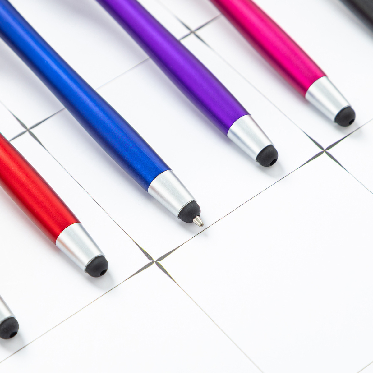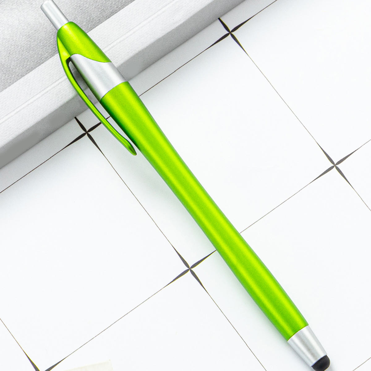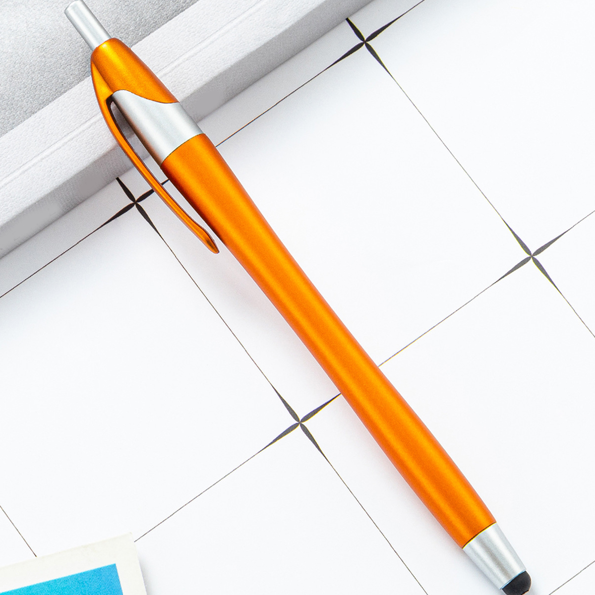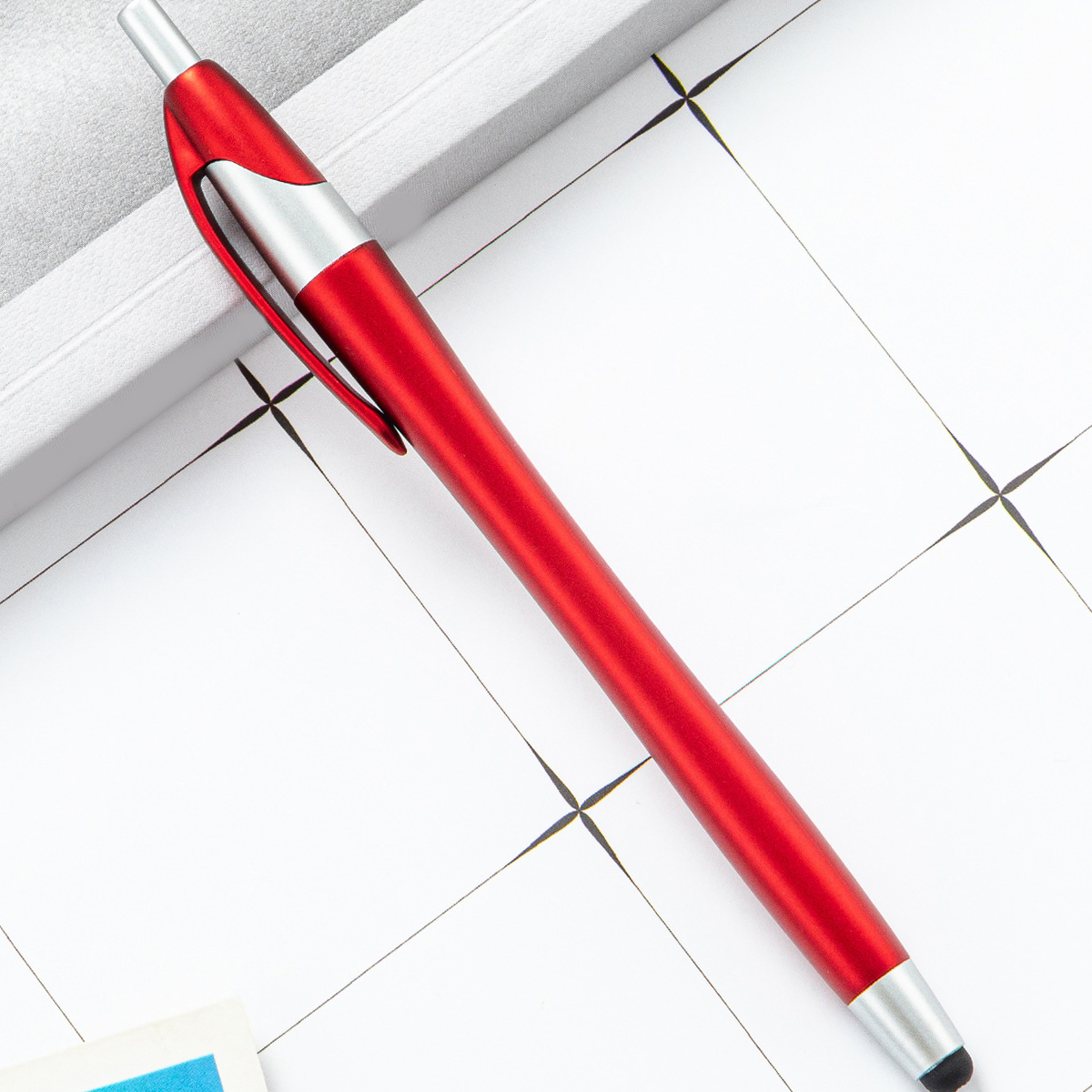 This 2-in-1 slim stylus pen is an ideal promotional item for electronic stores, phone companies, and communication businesses. Its built-in clip allows for convenient transport, easily attaching to pockets, books, or diaries. The soft rubber tip is compatible with all capacitive touch screen devices, including phones and tablets.