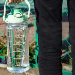 This high quality water bottle is designed to remind you to drink more water with time markers and an inspirational quote. It is made from BPA-free tritan co-polyester plastic, ensuring it is safe and odorless. Perfect for any sports activity or daily use, it helps you reach your health and fitness goals.