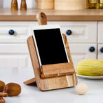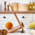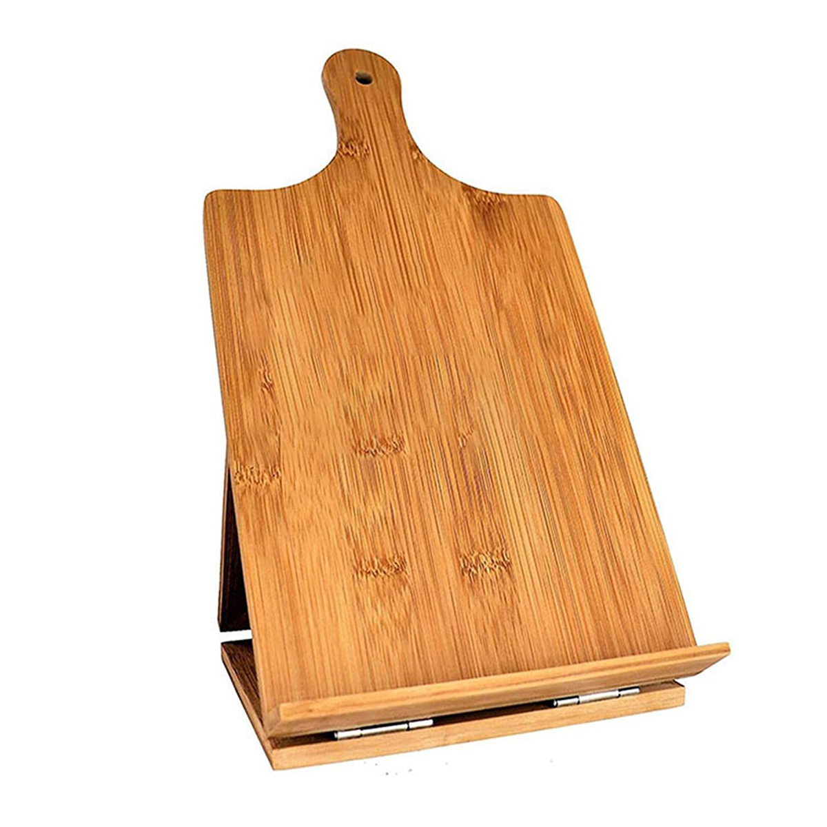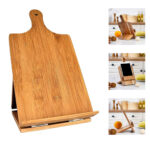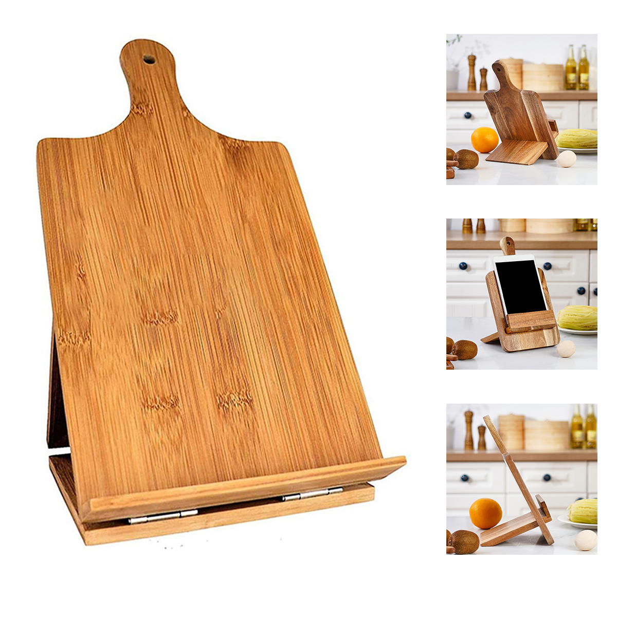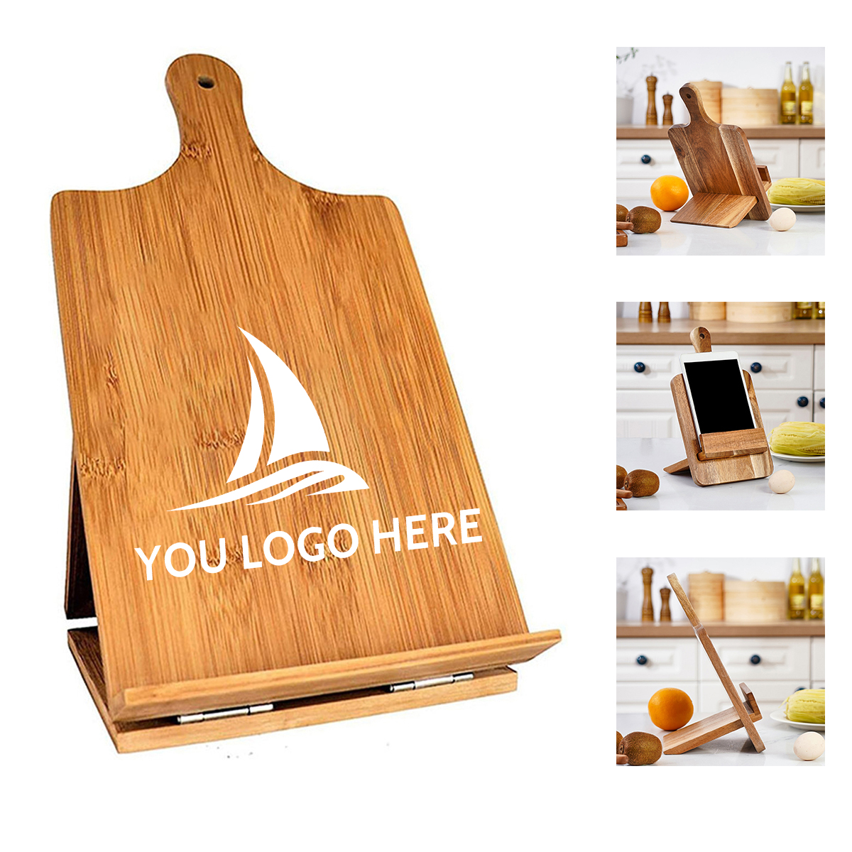 This versatile bamboo book stand is perfect for supporting various types of books, tablets, paintings, cookbooks, sheet music, textbooks, and tablatures. It conveniently folds for travel and can be placed on countertops, desks, end tables, or nightstands. The front lip serves as a splash guard and securely holds cookbooks, recipe cards, tablets, and smartphones. You have the option to choose from three locations for your imprint.