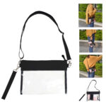 Our clear women’s handbags are perfect for easily navigating event security. Made with durable 0.5mm PVC, they are thicker than most other clear bags. Our cross body purses and tote bags offer both quality and value. Hand-stitched vinyl totes, designed for active women. Look great on game day with our adjustable strap clear tote, which can be worn as a shoulder pouch or crossbody bag. Made with a PU Leather band and zipper, it includes a small wrist strap.