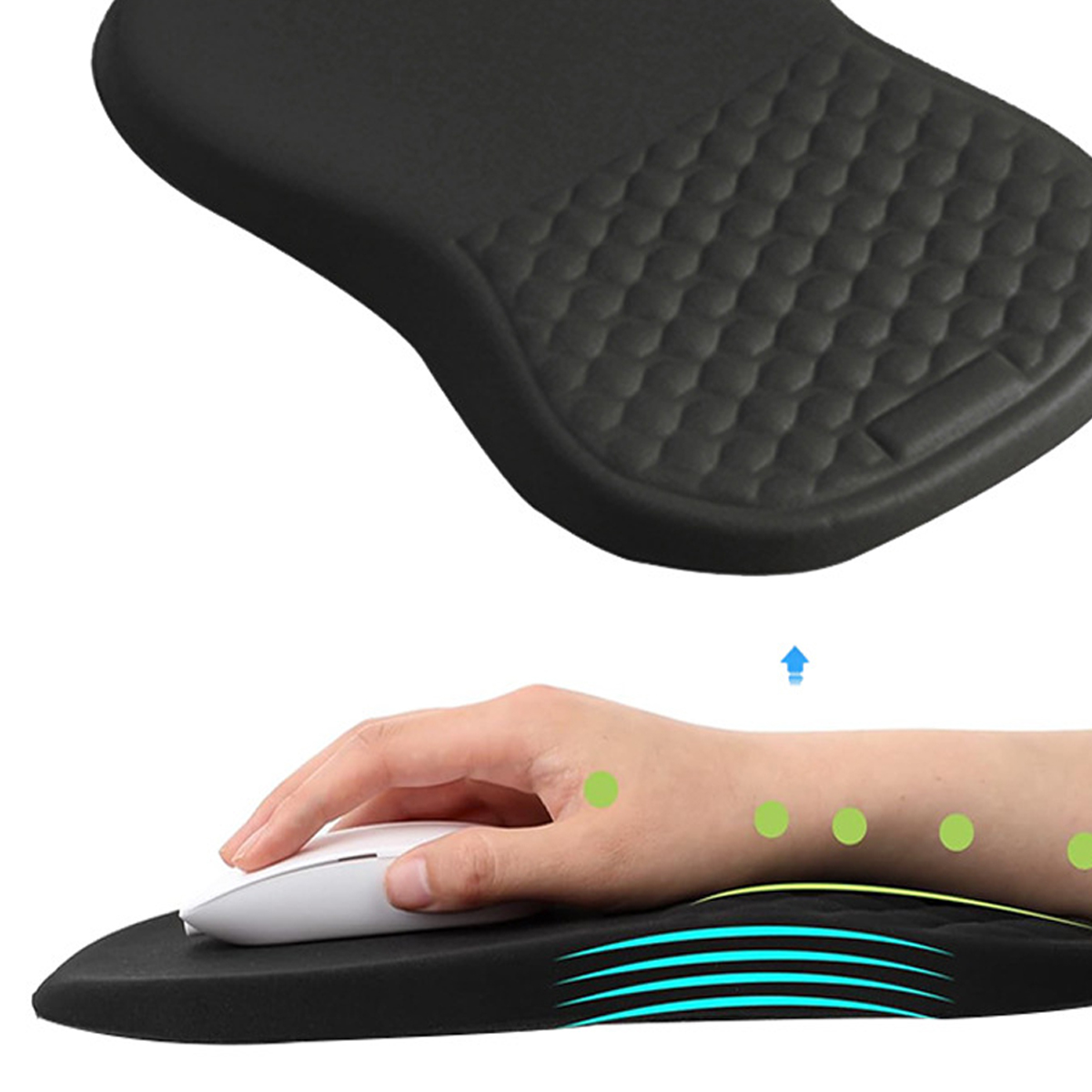 The Ergonomic Mouse Pad Wrist Support offers pain relief and comfort for extended computer use. With memory foam and a non-slip PU base, this mousepad provides stable support and wrist cushioning, reducing strain. The integrated massage design enhances circulation and relaxation. It has a smooth surface and accurate positioning, making it suitable for all types of mice. Ideal for wireless mice.