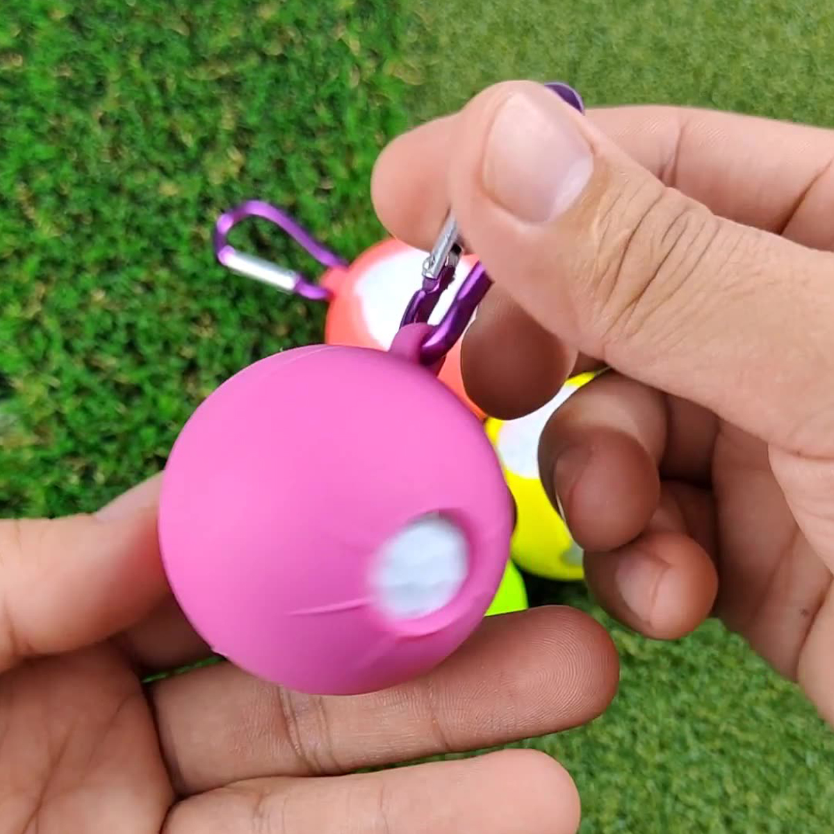 This silicone golf ball holder is made of durable and wear-resistant material. It is non-stick and easy to clean. The holder securely holds your golf balls and comes with an aluminum carabiner key chain for easy portability. Hang it on your pants or golf bag and never worry about losing balls again. This golf ball holder fits standard golf balls and is ergonomically designed for easy access. It is a great gift for golf enthusiasts.