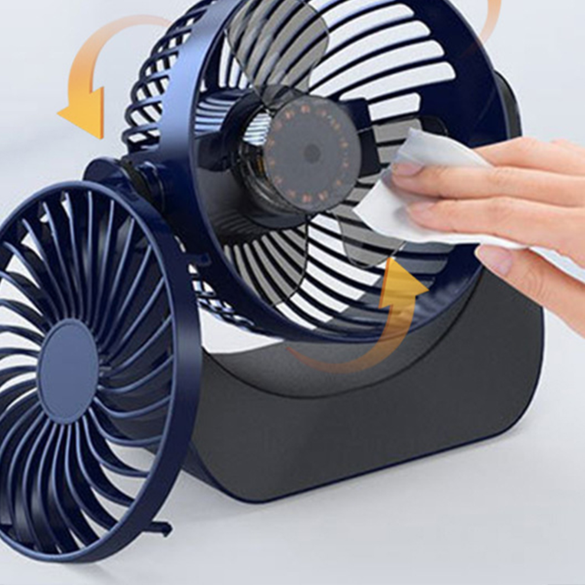 Compact lightweight design for maximum convenience. Small and lightweight fan provides cooling air circulation in any desired directions with 360 degree tilt rotation. Perfect for use in home, car, office, desktop, camping, or travel. Ultra-quiet operation ensures a peaceful environment for work or sleep. Powered by USB, compatible with various power sources. Energy-saving and environmentally friendly.