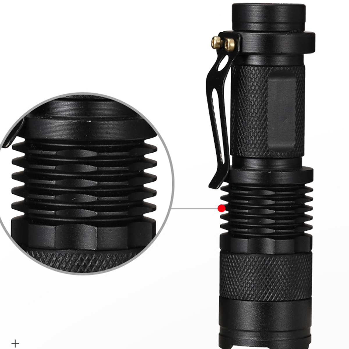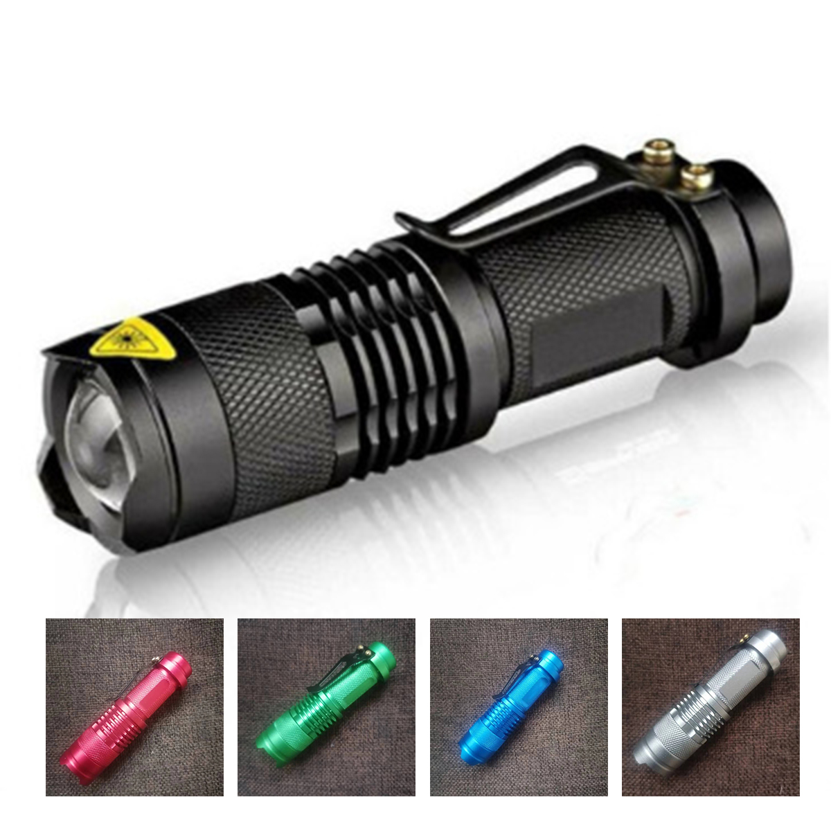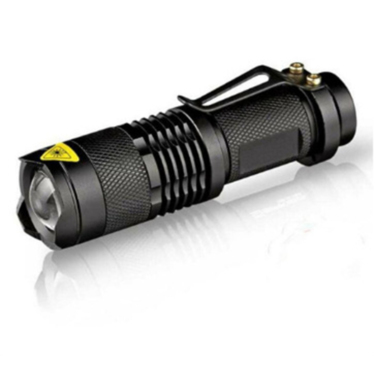 This durable LED flashlight is made of high-quality aluminum and has an anti-slip design. It features a long lifetime of up to 100,000 hours and a zoom function for adjustable focus. With 6 different settings, it's perfect for low-light situations. It can be powered by either a 18650 battery (included) or 3 AAA batteries (not included). Its compact size makes it easy to carry and it fits well in your hand, pocket, handbag, or tool box.