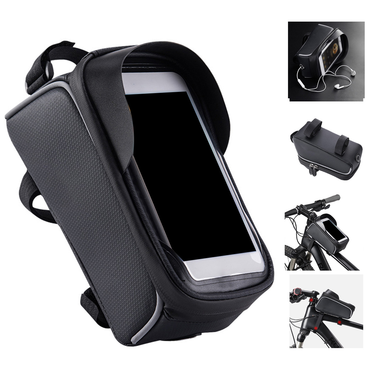 The waterproof bike bag is made of polyester and features seamless double zippers, providing excellent protection for your phone in rain and extreme conditions. With ample space inside, it can hold various items such as your phone, charger, power bank, USB cable, bicycle repair tools, and small tire pump. It’s compatible with cellphones up to 6.5 inches, including Phone 11 XR XS MAX X 8 7 6s plus 5s and Samsung Galaxy s8 s7 note 7. Additionally, it’s designed to be shake-proof and resistant to deformation, making it an ideal front frame bag for your bike.